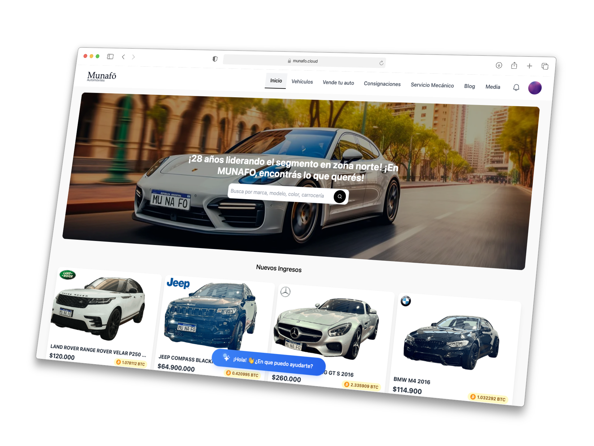 Ver Sitio WebSe diseñó una página web moderna y escalable que funciona como marketplace de vehículos. Los clientes pueden visualizar el stock disponible, asociarse y publicar sus propios vehículos, además de interactuar con funciones sociales como dar 'me gusta', guardar y compartir publicaciones.