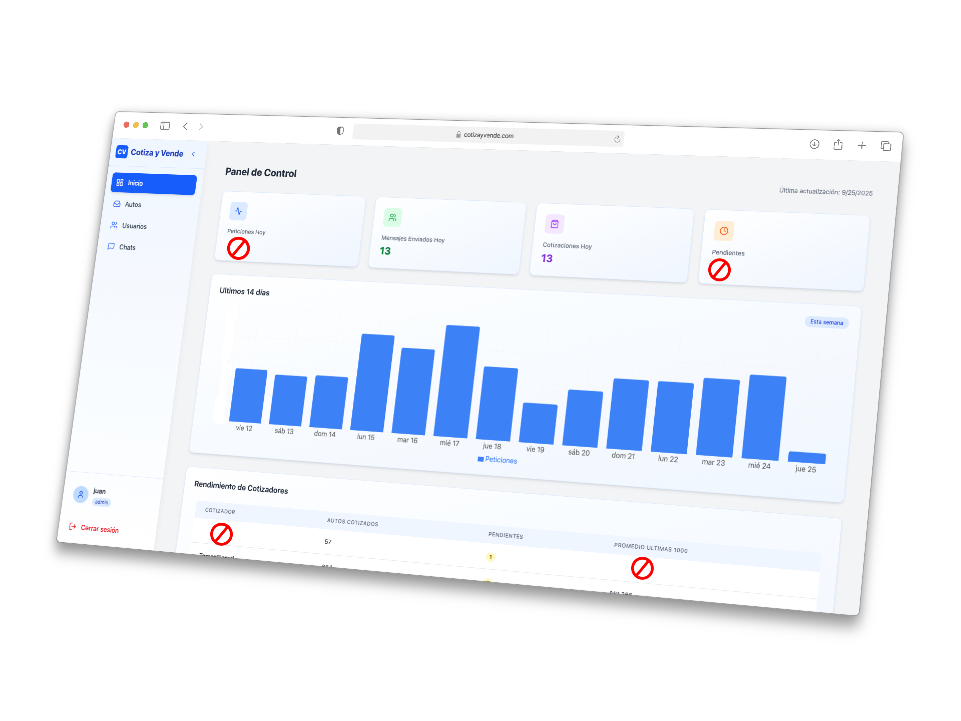 Transformamos un proceso manual basado en Excel y WhatsApp en un sistema automatizado centralizado. Ahora las cotizaciones ingresan desde la landing, se gestionan en un panel a medida y los mensajes se envían automáticamente con la API oficial de WhatsApp.