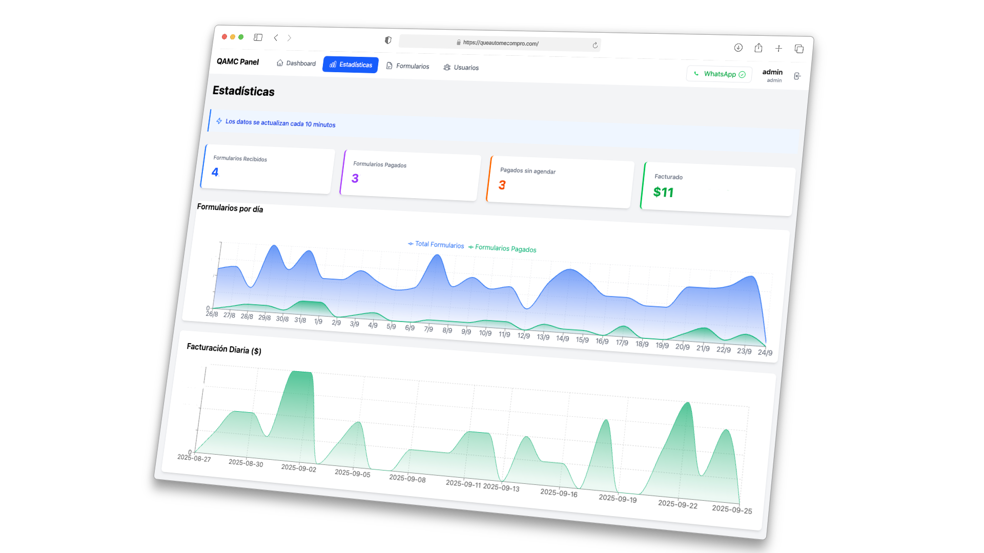 Se desarrolló un panel interno donde se puede visualizar: - Todas las reservas y pagos realizados. - Notificaciones enviadas automáticamente a clientes. - Métricas de ventas y rentabilidad por día, semana o mes. - Reportes financieros detallados, ayudando a Lucas a tomar decisiones estratégicas y ver cómo evoluciona su negocio.